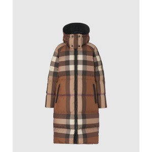 체크 후드 롱 재킷 > 의류